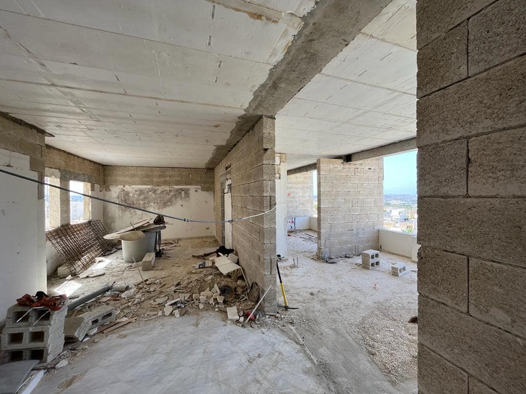 San Pawl tat-Targa - A newly-built fourth floor apartment enjoying valley views. The property offers a good-sized open plan, three bedrooms, the main with an ensuite, and the main bathroom. The property is being sold finished excluding internal doors and bathrooms. Freehold.