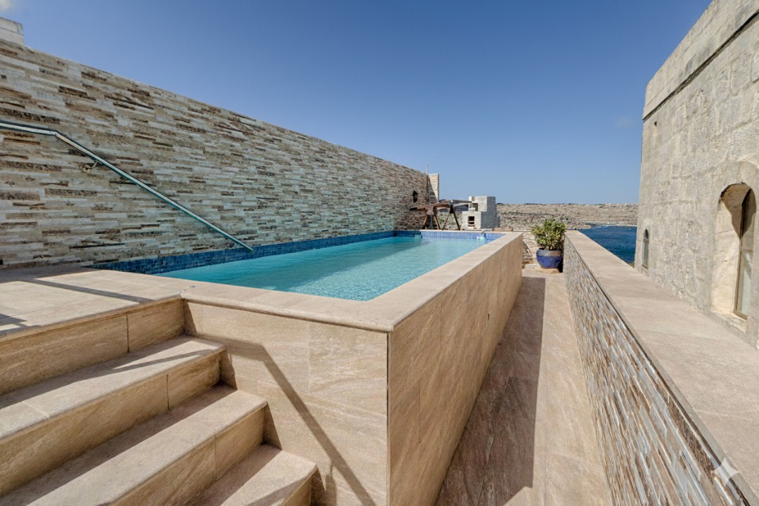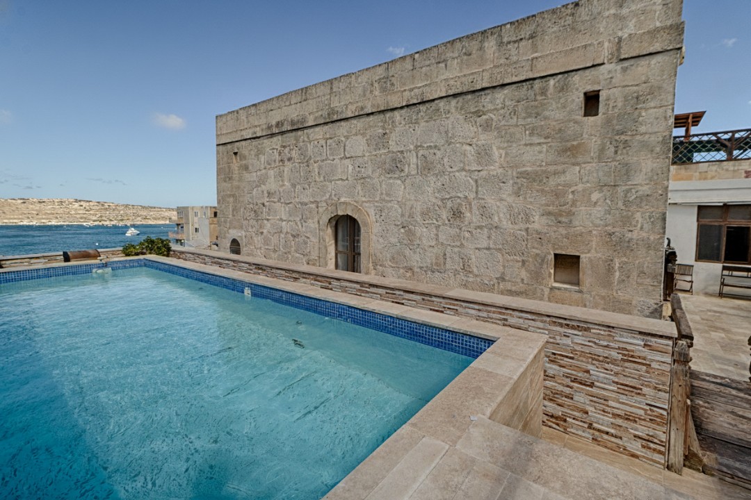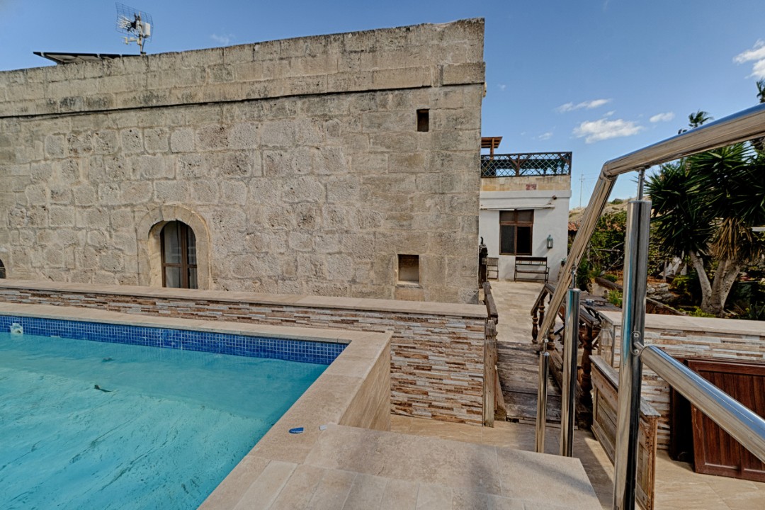 This St Paul’s Bay farmhouse for sale offers a unique opportunity to own a historic (c. 1920) double-fronted property on a private road. This 4-bed, 3-bath home includes a pool, garden, 3-car garage, and an adjacent semi-detached dwelling.